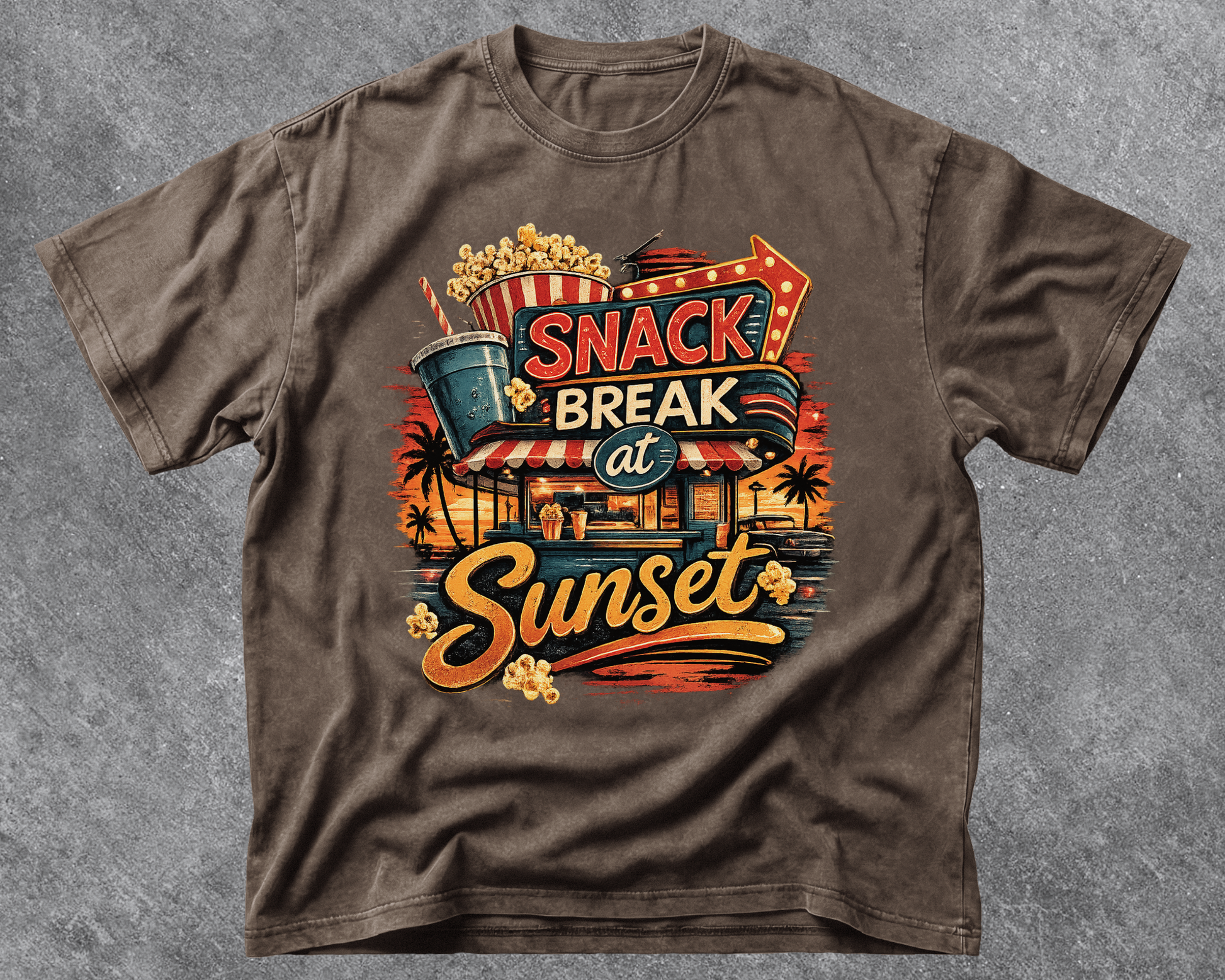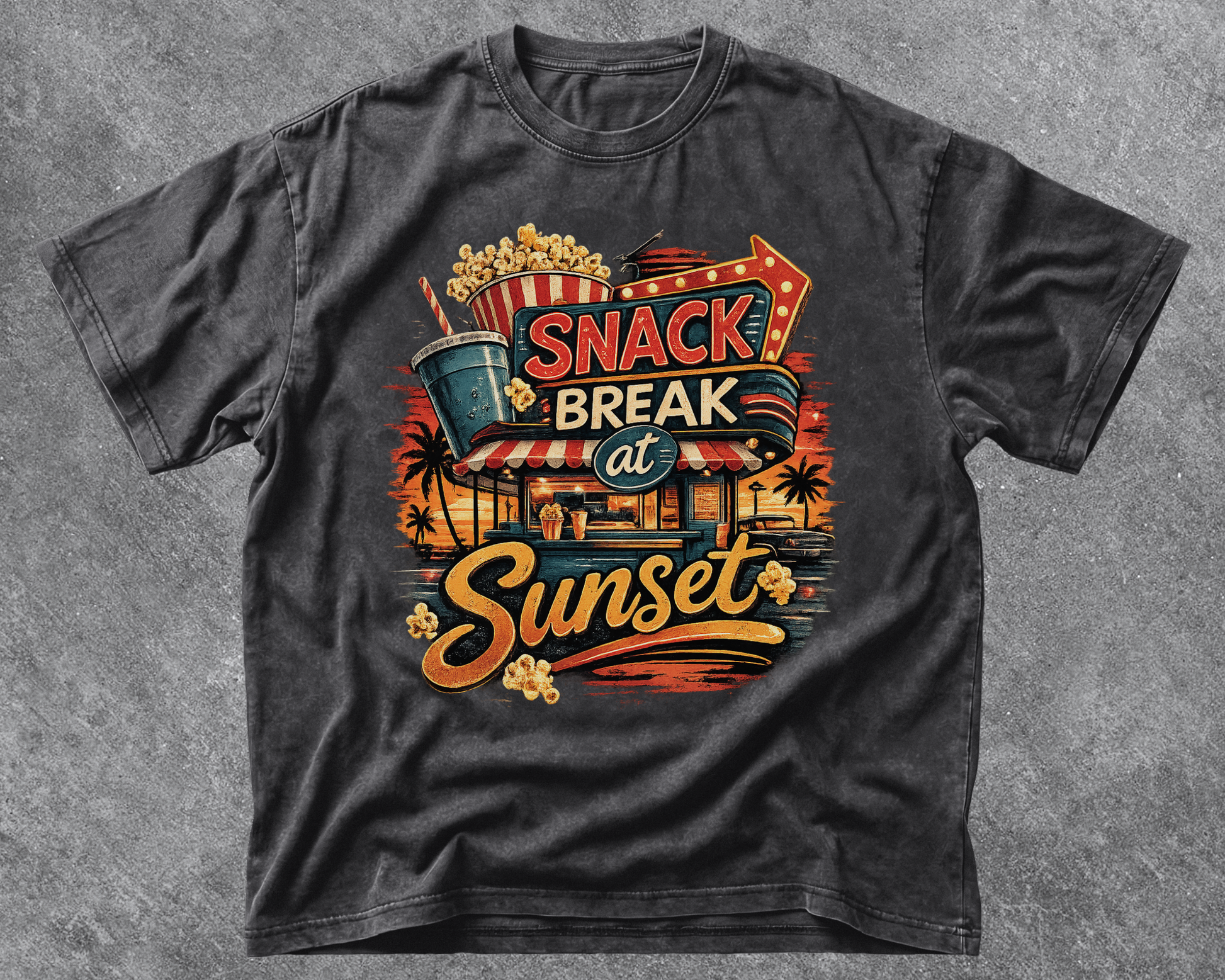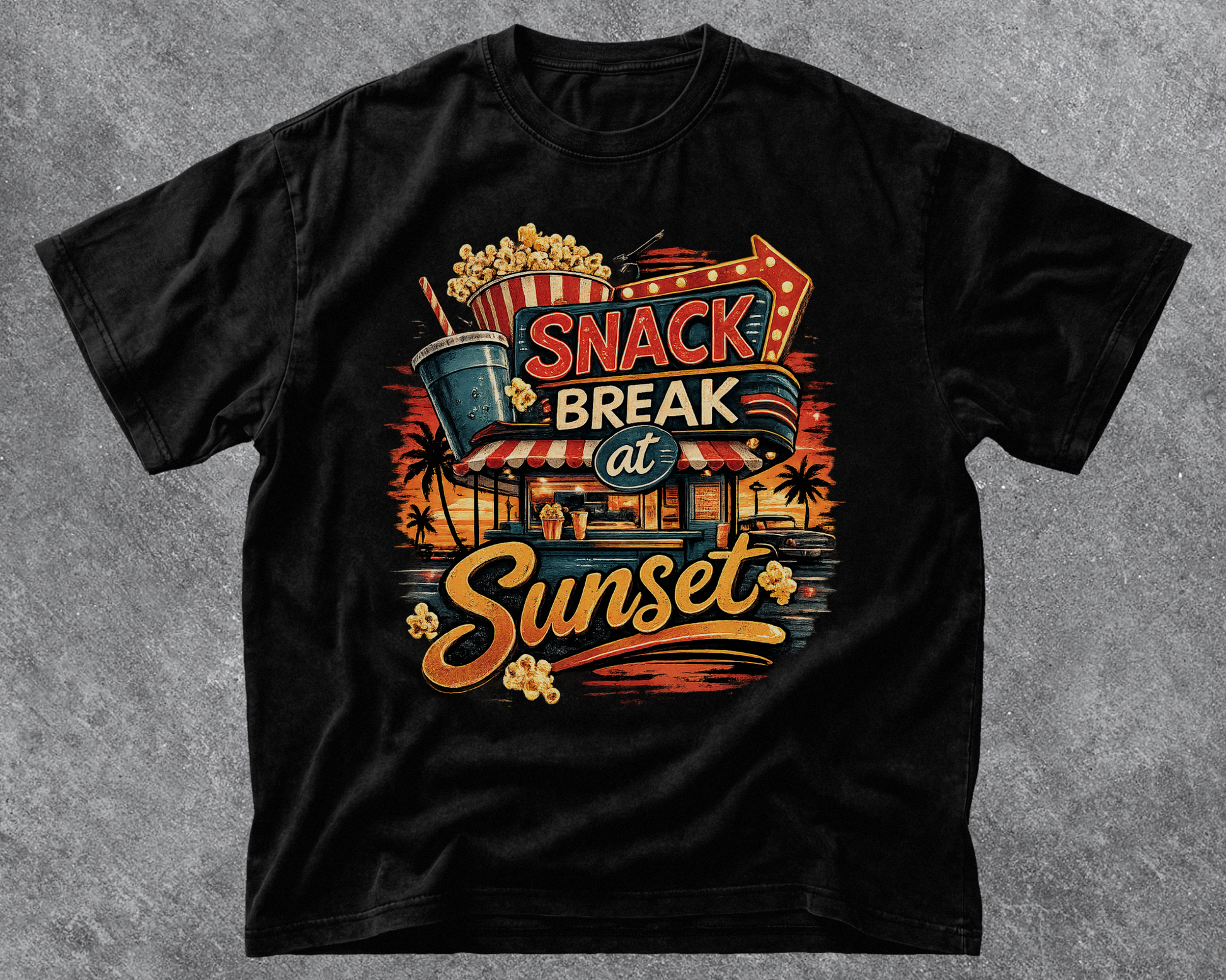 Inspired by vintage snack bars, sunset drives, and classic movie nights, this design captures the simple joy of good food and golden hour vibes.