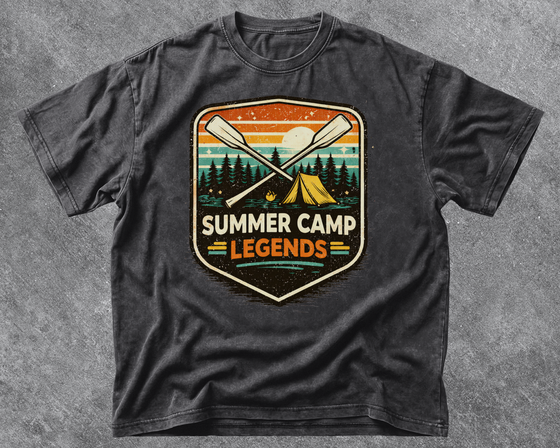 Inspired by classic camp adventures, this design captures the spirit of summer nights, nature, and lifelong memories.